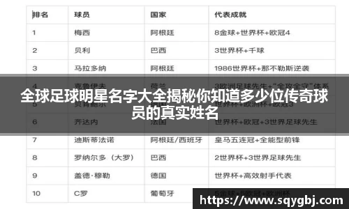 全球足球明星名字大全揭秘你知道多少位传奇球员的真实姓名
